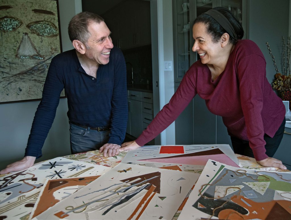 I paint with my bare hands using non-toxic pigments, walnut oil, and oil pastel crayons.  I do not use any organic solvents.  I love using different parts of my hands to create marks.  When I press my hands on a surface, I am transferring my feelings.  My art is a way I express myself and connect with others.